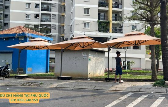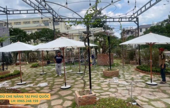 Khu vực Phú Quốc, với nhiều resort, nhà hàng, quán cafe ngoài trời, cần không gian sang trọng và thoáng mát. Một chiếc dù lệch tâm hay dù tròn chính tâm có độ bền cao không chỉ che nắng mà còn tạo điểm nhấn tinh tế, góp phần nâng tầm hình ảnh cho không gian tại Phú Quốc.