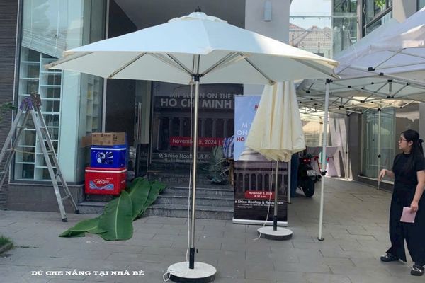 - Loại dù che nắng có tán che phủ diện tích lớn, phù hợp quán cafe, nhà hàng ngoài trời ở Nhà Bè.